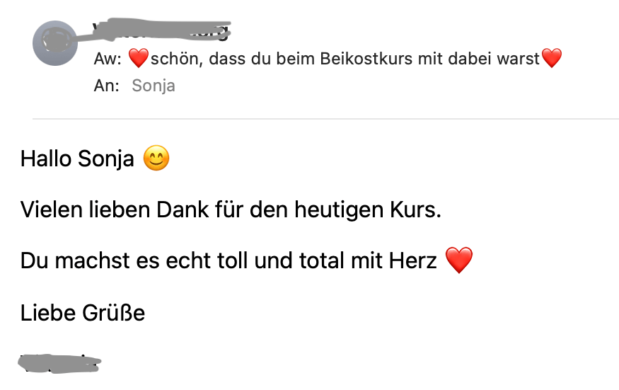 Die Rückmeldungen meiner Teilnehmerinnen freuen mich immer von Herzen: